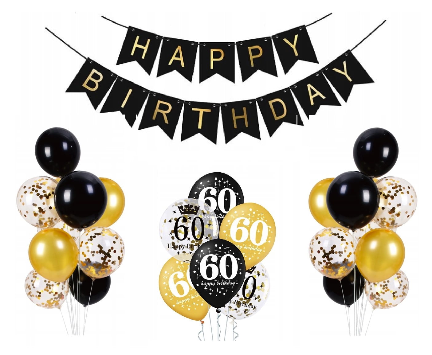 Balony z banerem Happy Birthday na 60tkę Urodziny