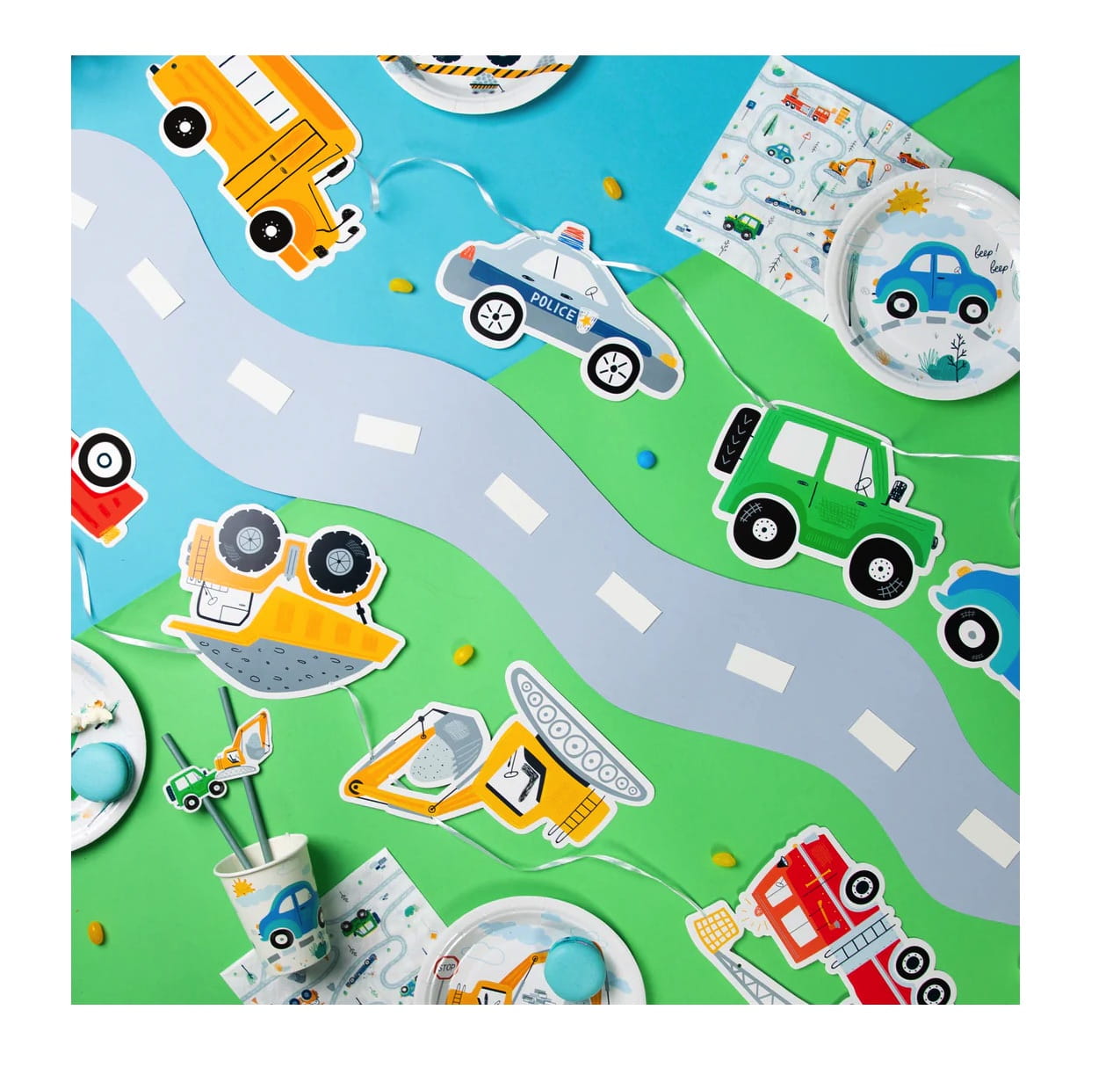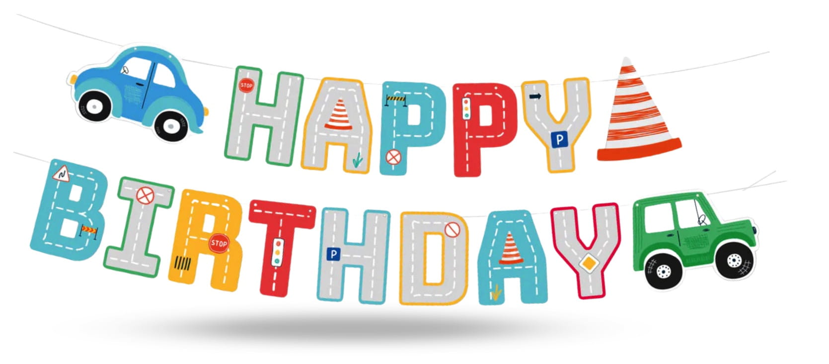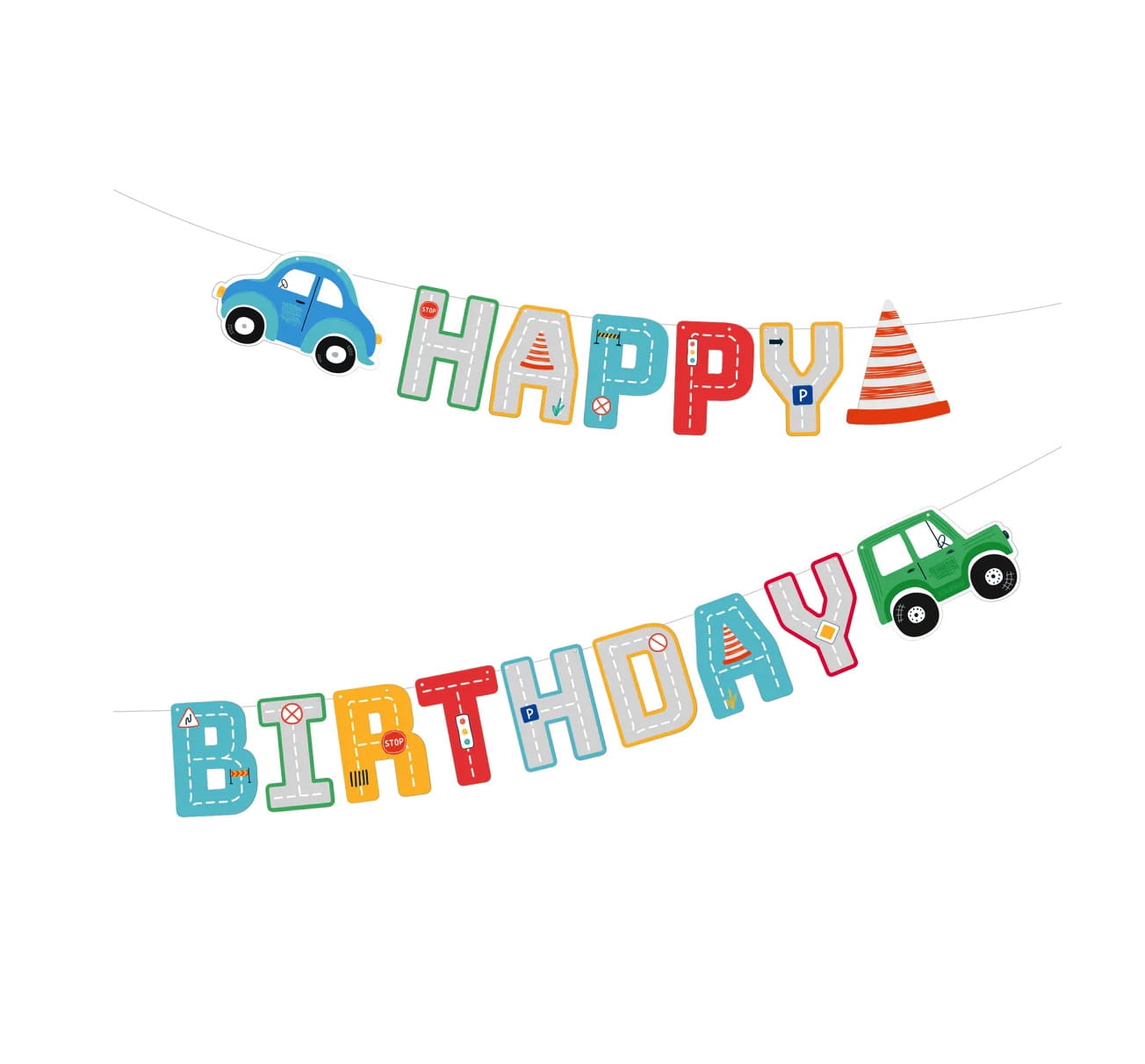 Girlanda Happy Birthday Auta Pojazdy Baner urodzinowy Pachołek drogowy