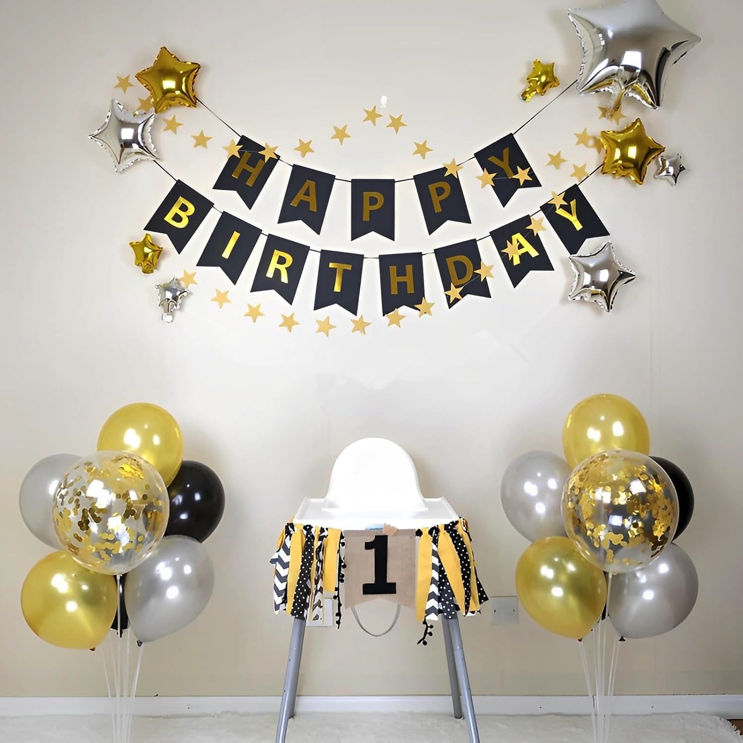 Baner urodzinowy Happy Birthday czarny 1 szt