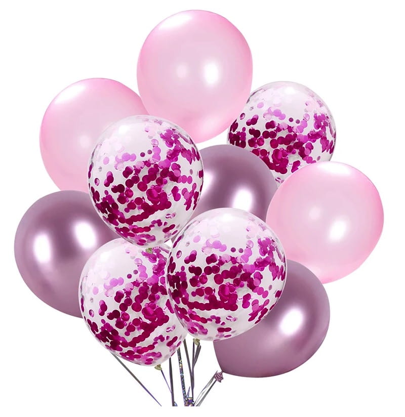 Bukiet Balonów Różowych Chrzciny Komunia zestaw Z konfetti Urodziny liliowe