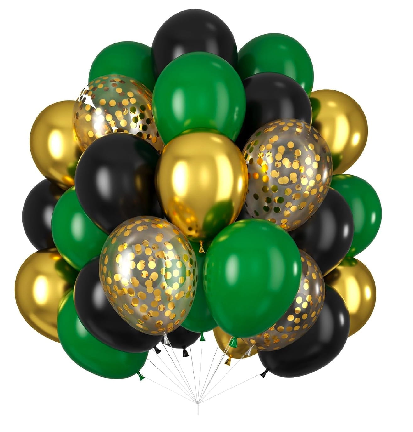 Bukiet balonów butelkowa zieleń złote czarne z konfetti Zestaw Rocznica Ślubu
