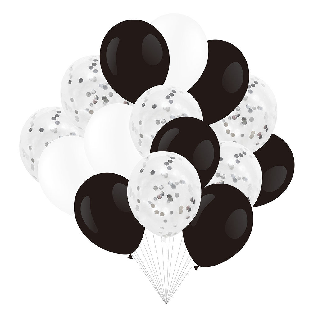 Bukiet balonów czarno biały z konfetti