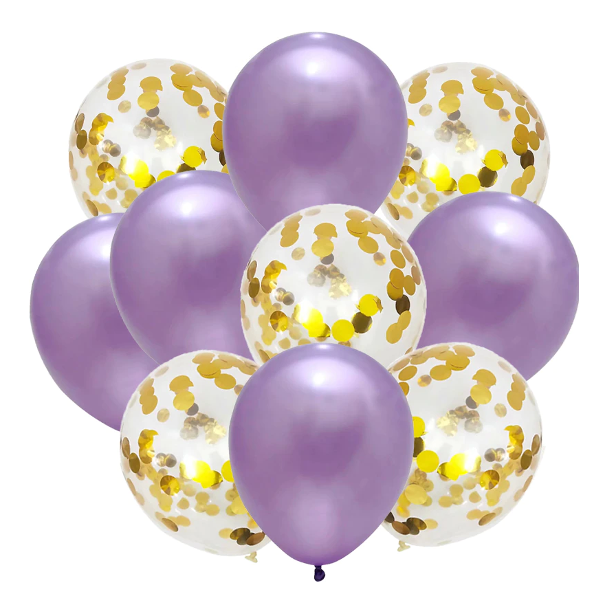 Bukiet balonów fioletowy chrom z konfetti 10szt na hel