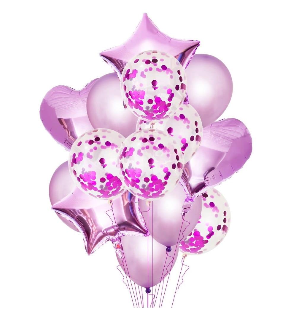 Bukiet balonów liliowe jasny fioletowy serca gwiazdy Walentynki