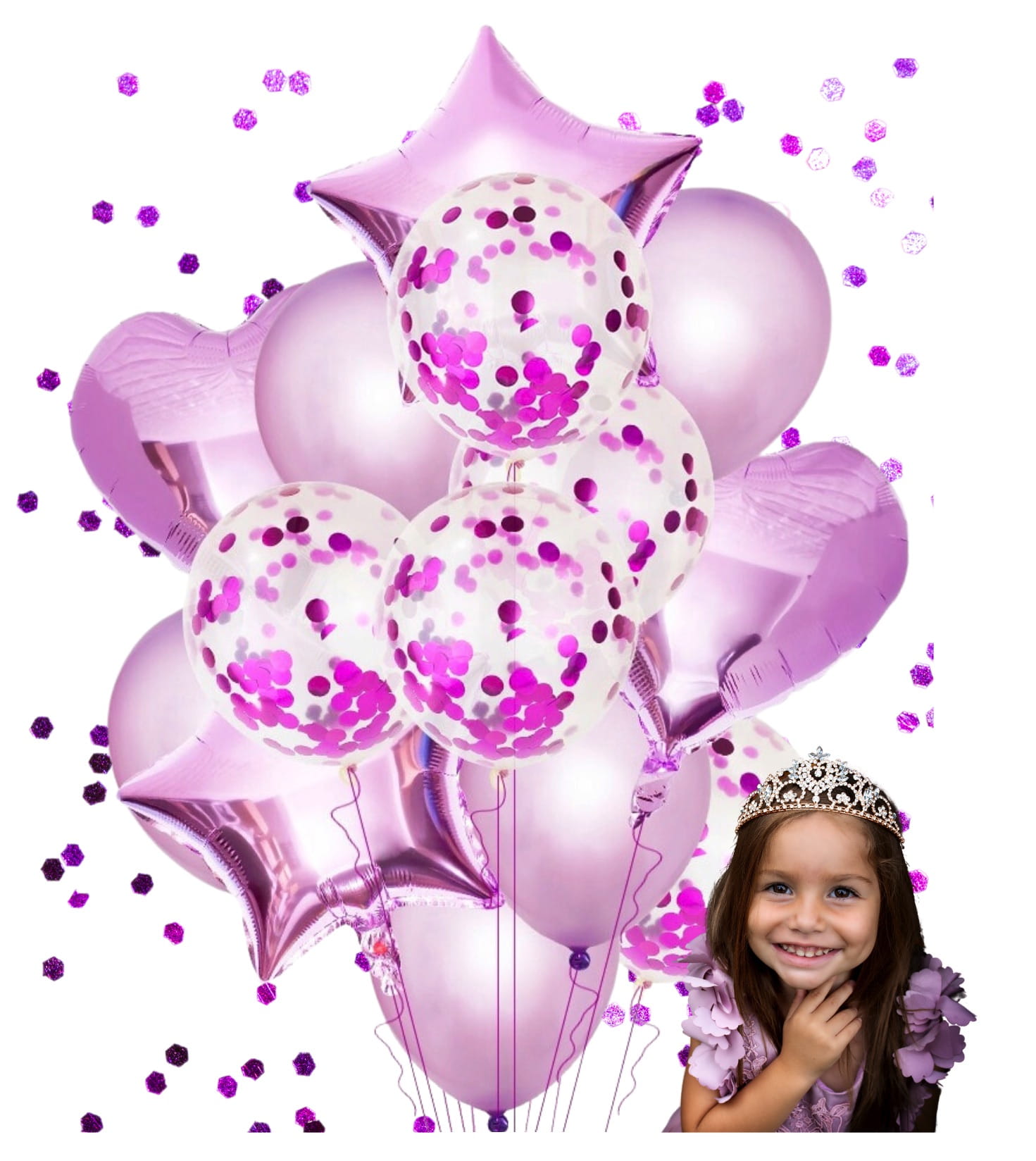 ✔️ balony lateksowe z konfetti fuksja 5 sztuk około 31 cm