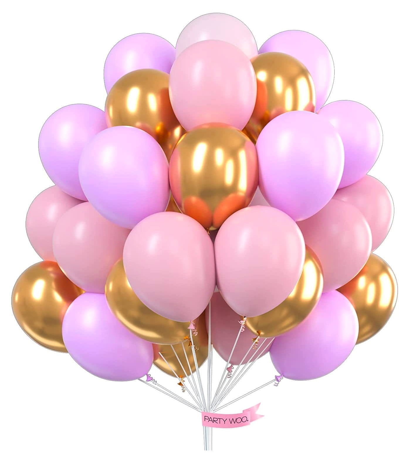 Bukiet balonów liliowo złoto różowe