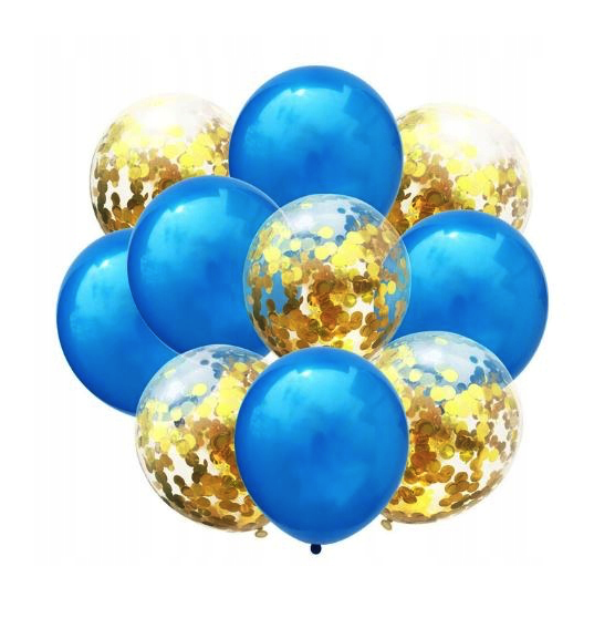 Bukiet balonów niebieski chrom z konfetti złotym