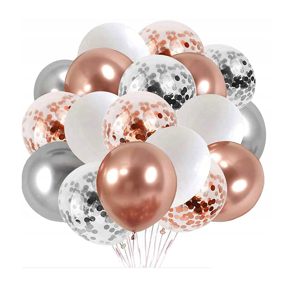 Bukiet balonów z konfetti gold rose srebrne