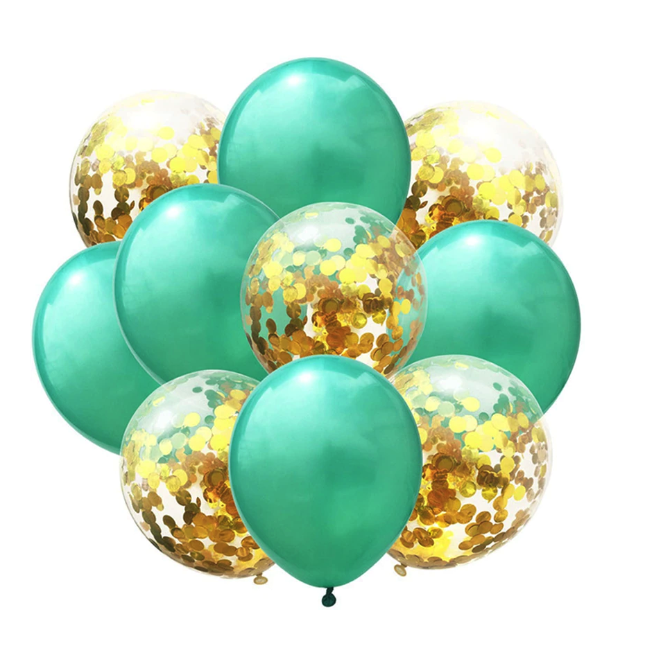 Bukiet balonów zielony chrom konfetti 10 szt Dzień Św. Patryka