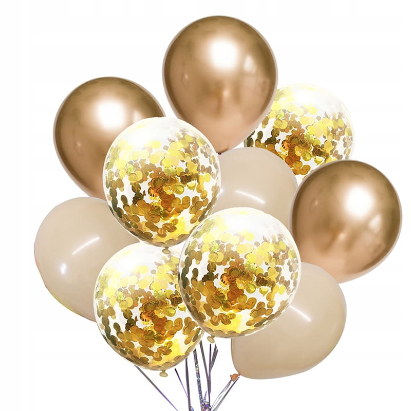- balony lateksowe transparentne z konfetti złotym 4 sztuki około 31 cm ( 12cali ) UWAGA! balony są już napełnione konfetti, wystarczy napompować