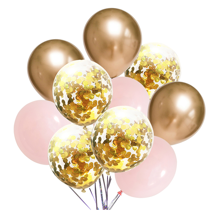 - balony lateksowe transparentne z konfetti złotym 4 sztuki około 31 cm (12cali) UWAGA! balony są już napełnione konfetti, wystarczy napompować