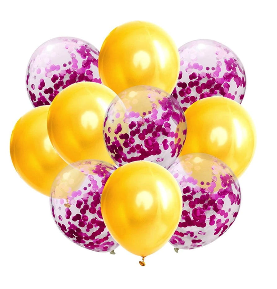 - balony lateksowe transparentne z konfetti fuksja 5 sztuk około 31 cm (12cali) UWAGA! balony są już napełnione konfetti, więc wystarczy tylko napompować