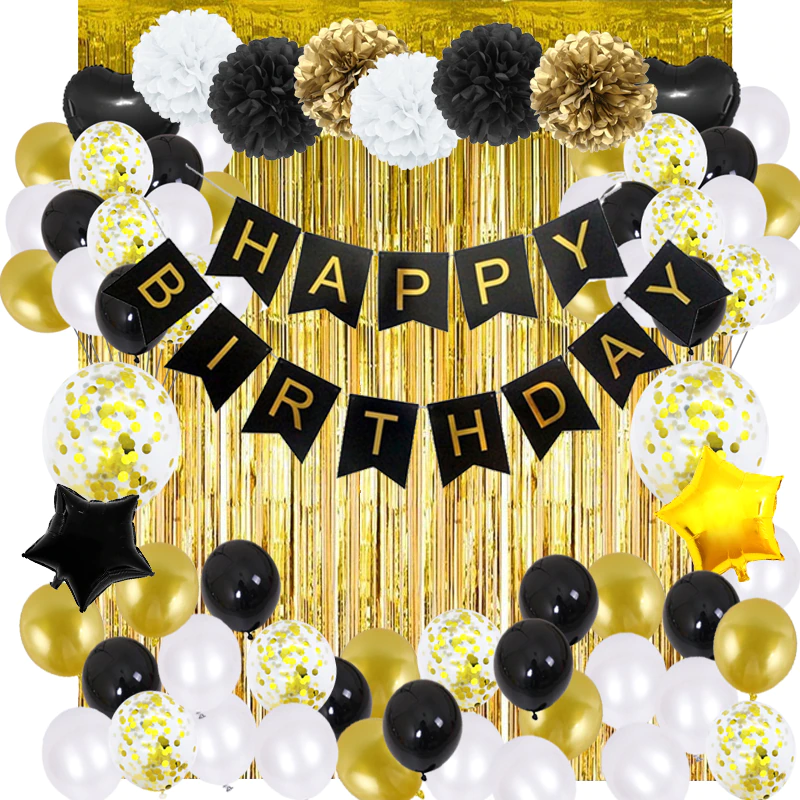 Dekoracja urodzinowa złote z Kurtyną Baner i Pompony