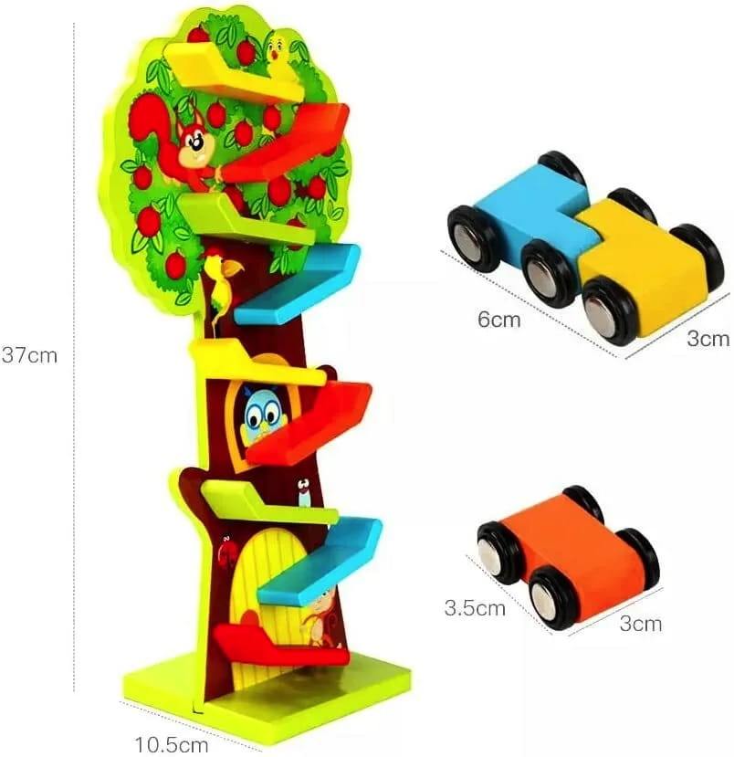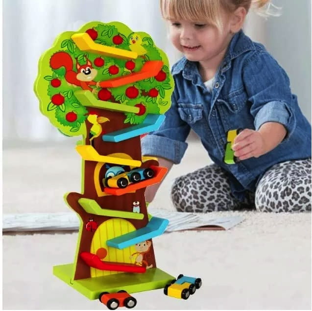 Drewniana zjeżdżalnia dla samochodzików - kolorowa nauka ruchu i fizyki!