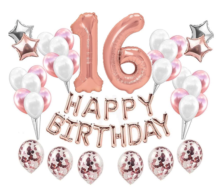 Duży zestaw balonów Rose Gold na 16 urodziny Happy
