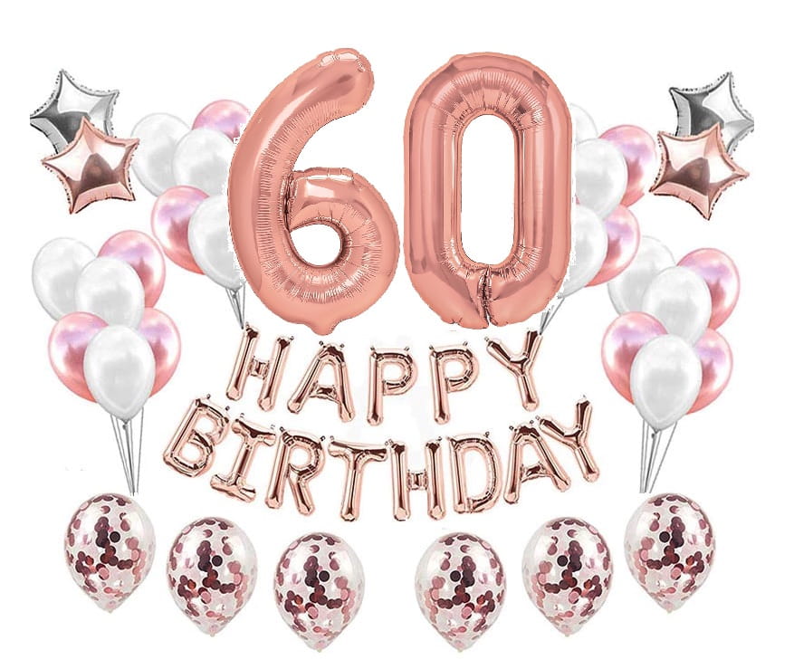 Duży zestaw balonów Rose Gold na 60 urodziny Happy
