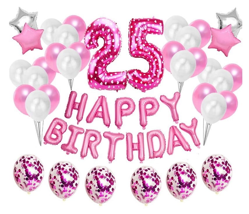 ✔️ napis z balonów foliowych różowych Happy Birthday (rozmiar ok. 340cm x 35cm)