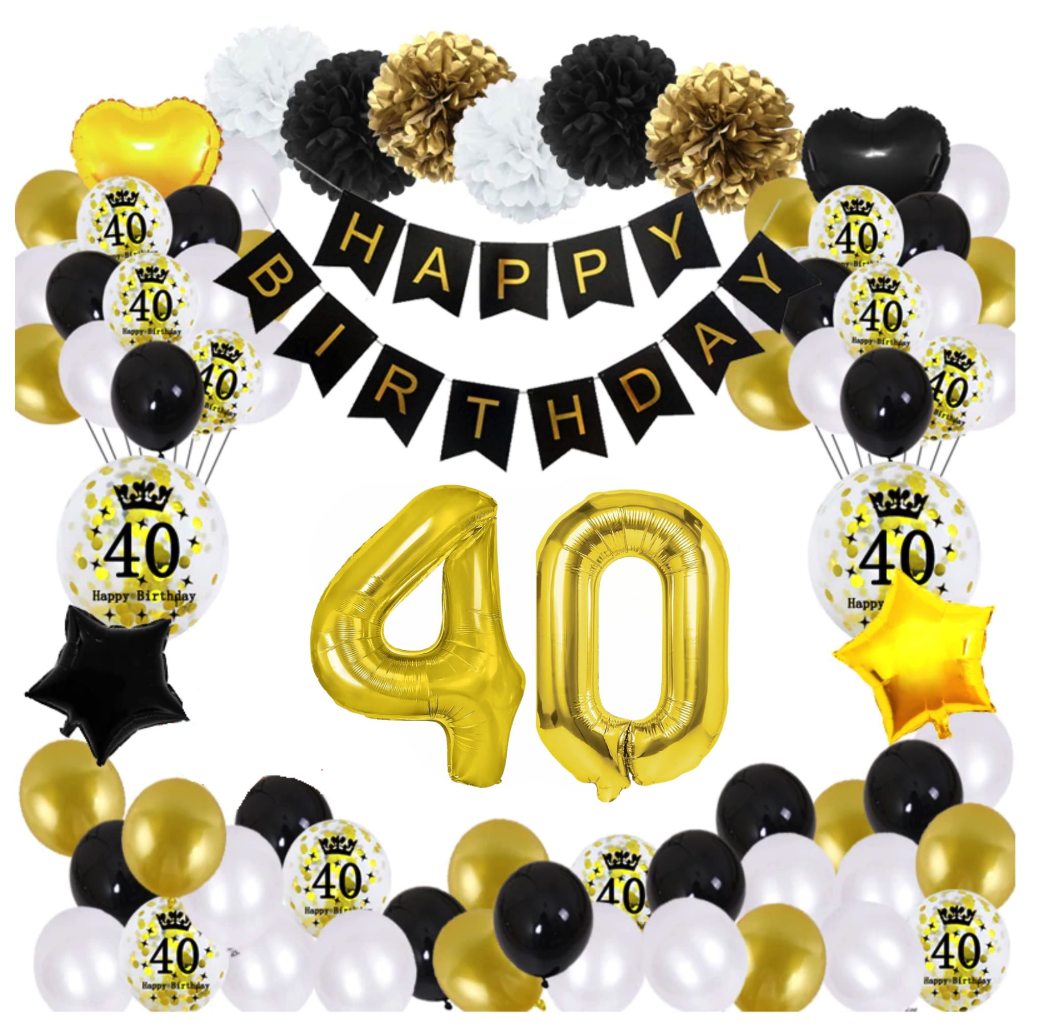 Duży zestaw balonów na 40 urodziny Złote Baner