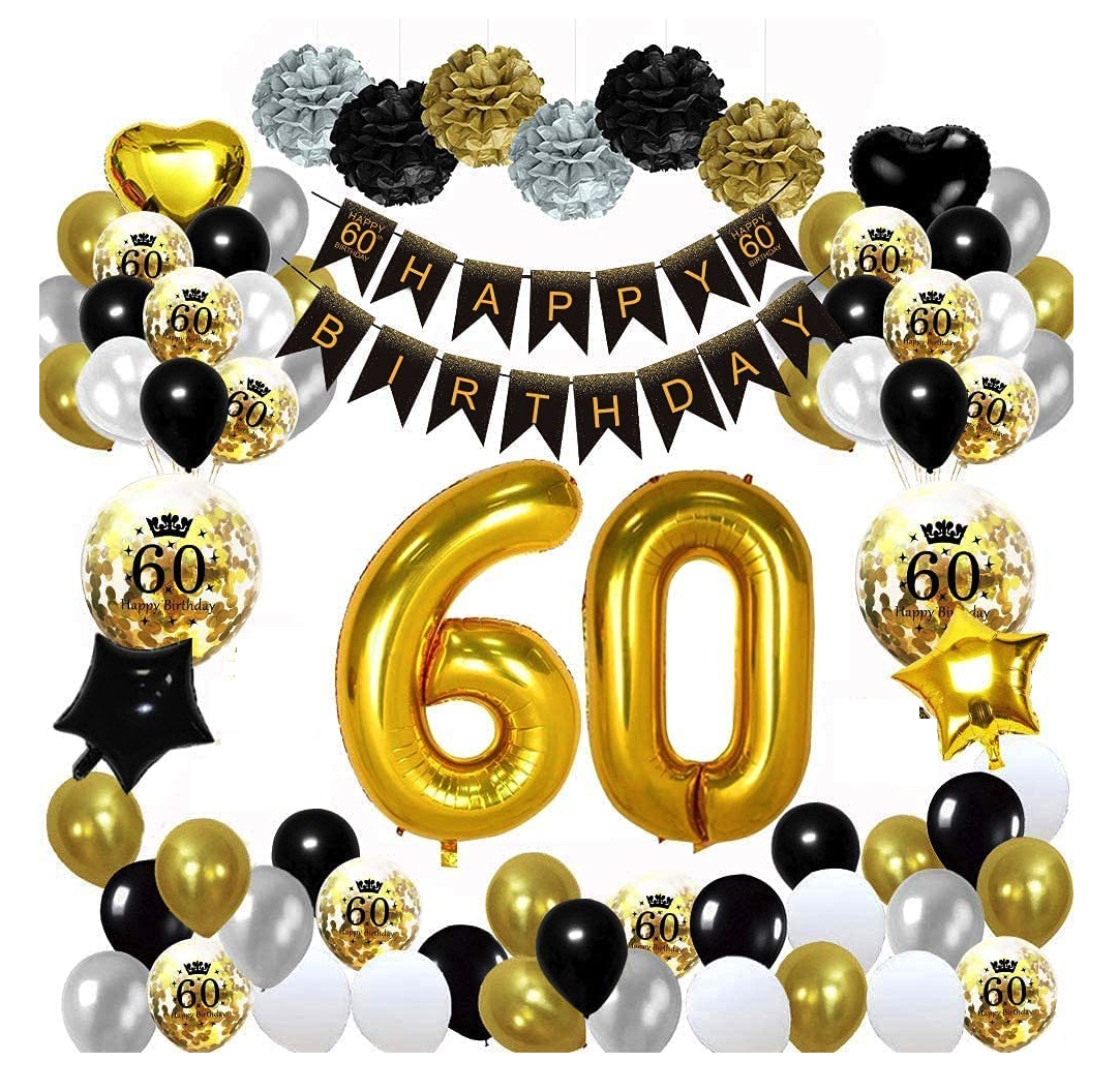 Duży zestaw balonów na 60 urodziny Złote Baner