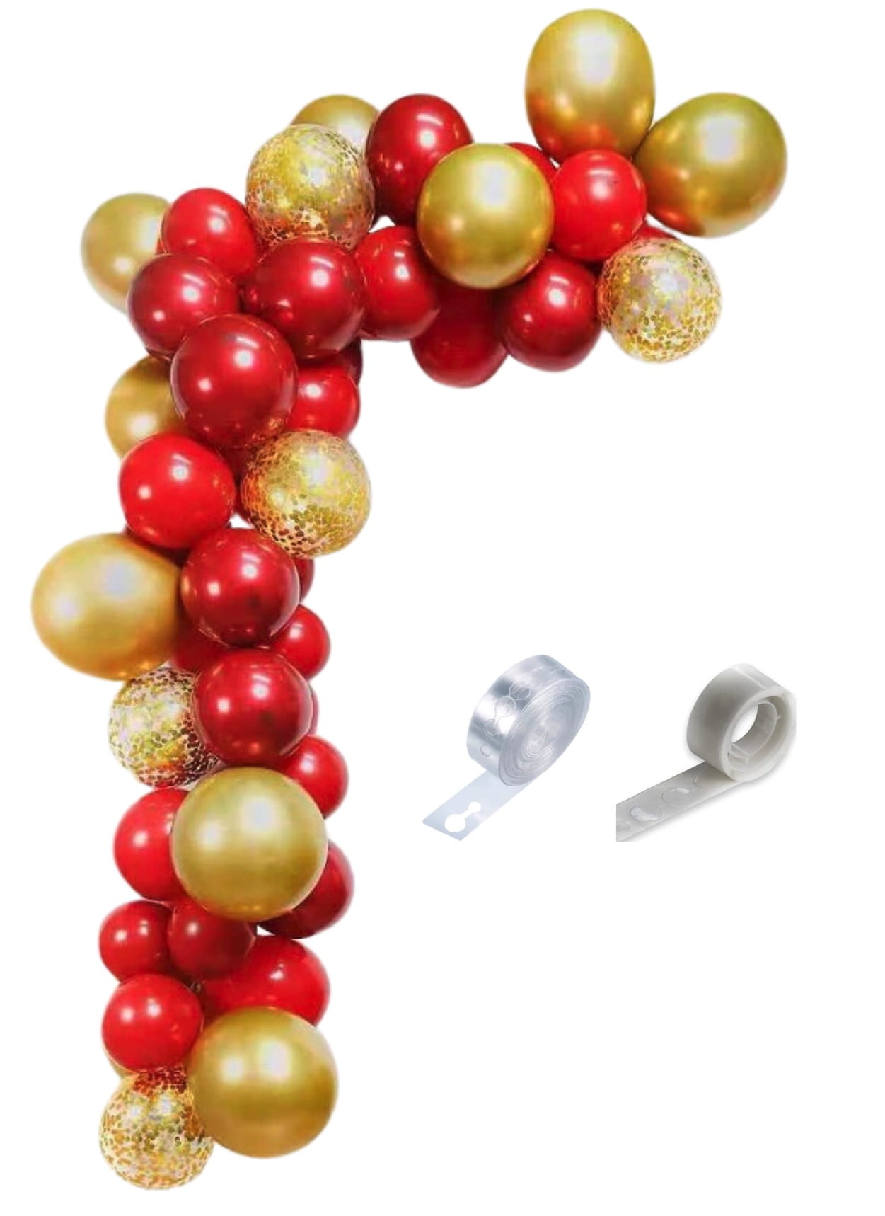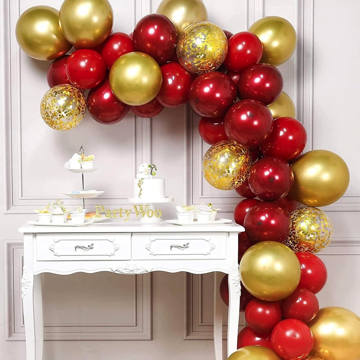 ✔️ Luksusowy design: Połączenie czerwonych i złotych balonów z dodatkiem konfetti tworzy elegancki i luksusowy wygląd, który zachwyci wszystkich gości.