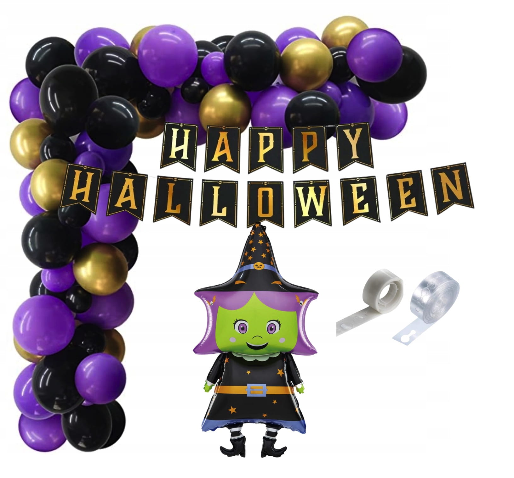 Girlanda balonowa Halloween fioletowo czarna Wiedźma dekoracje