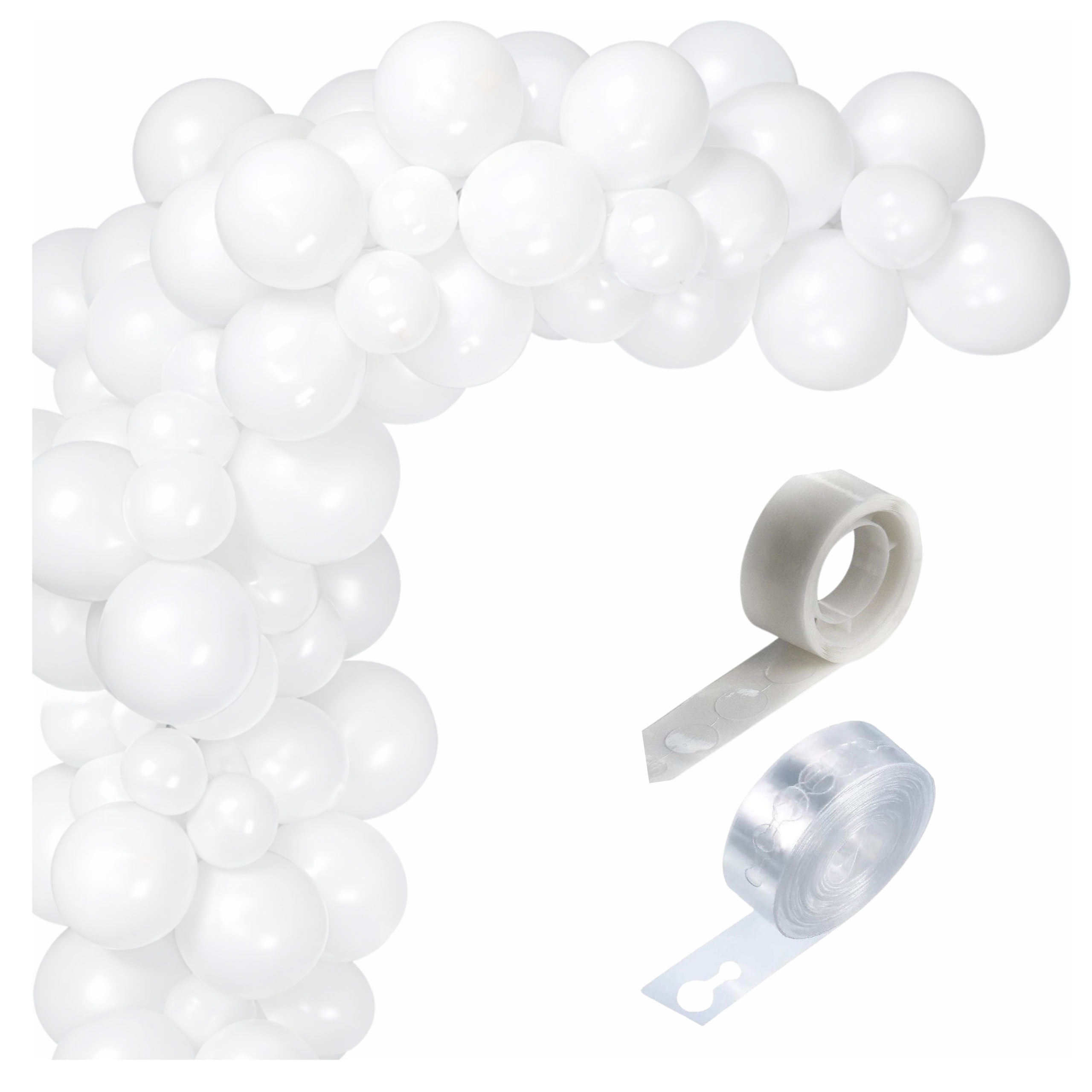 ✅ Czy zestaw zawiera pompkę? Nie — zestaw zawiera balony, taśmę i kropki klejowe.