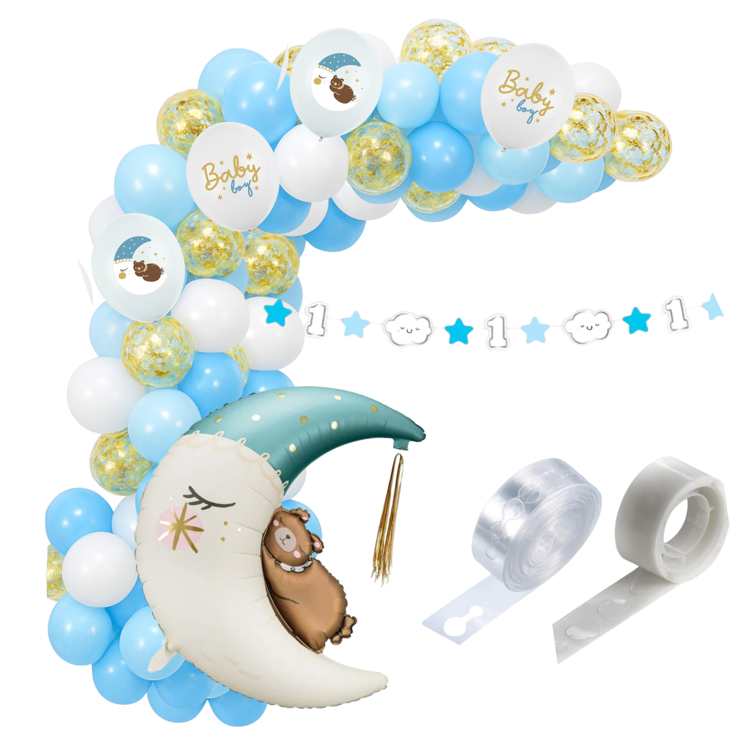 Girlanda balonowa ROCZEK chłopca baner zestaw balonów Księżyc taśma kropki