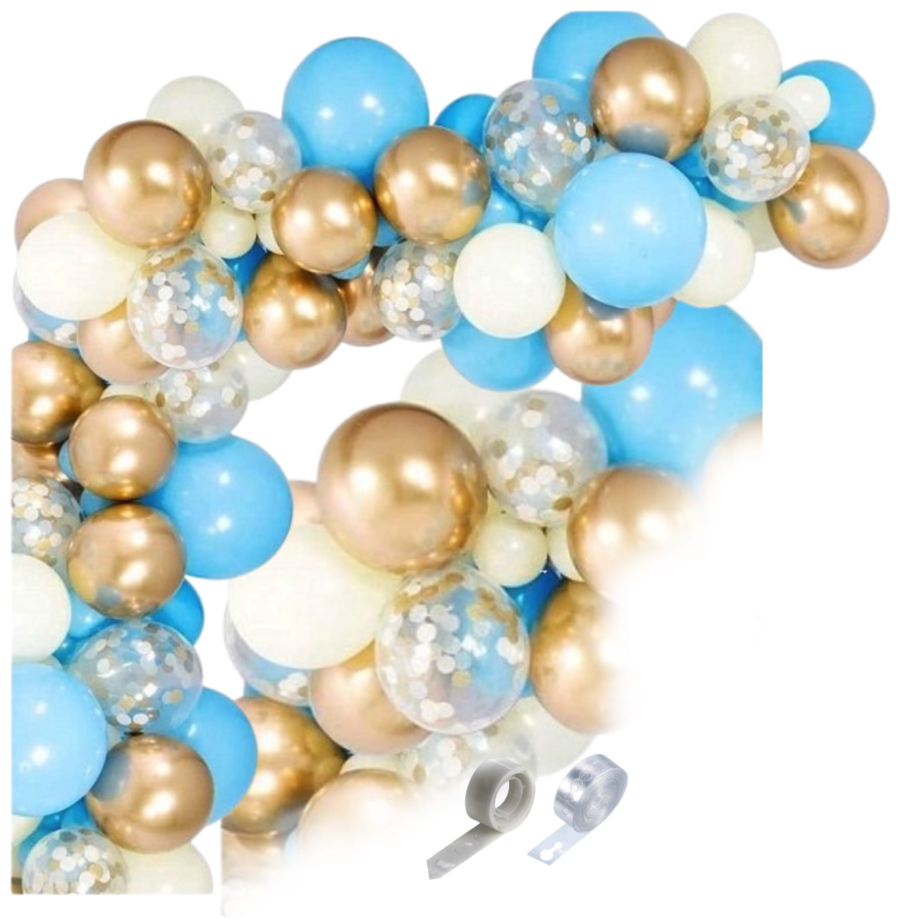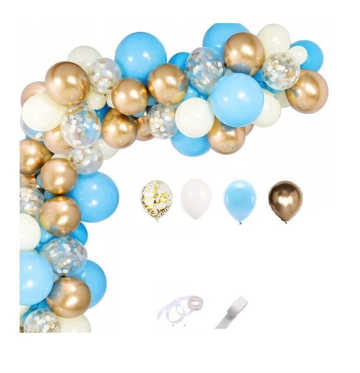 Girlanda balonowa błękitno złota Komunia Chrzest Roczek Chłopca taśma łuk
