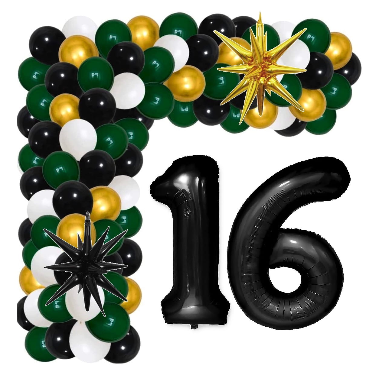 Girlanda balonowa butelkowa zieleń z Cyframi na 16 Urodziny balony z taśmą