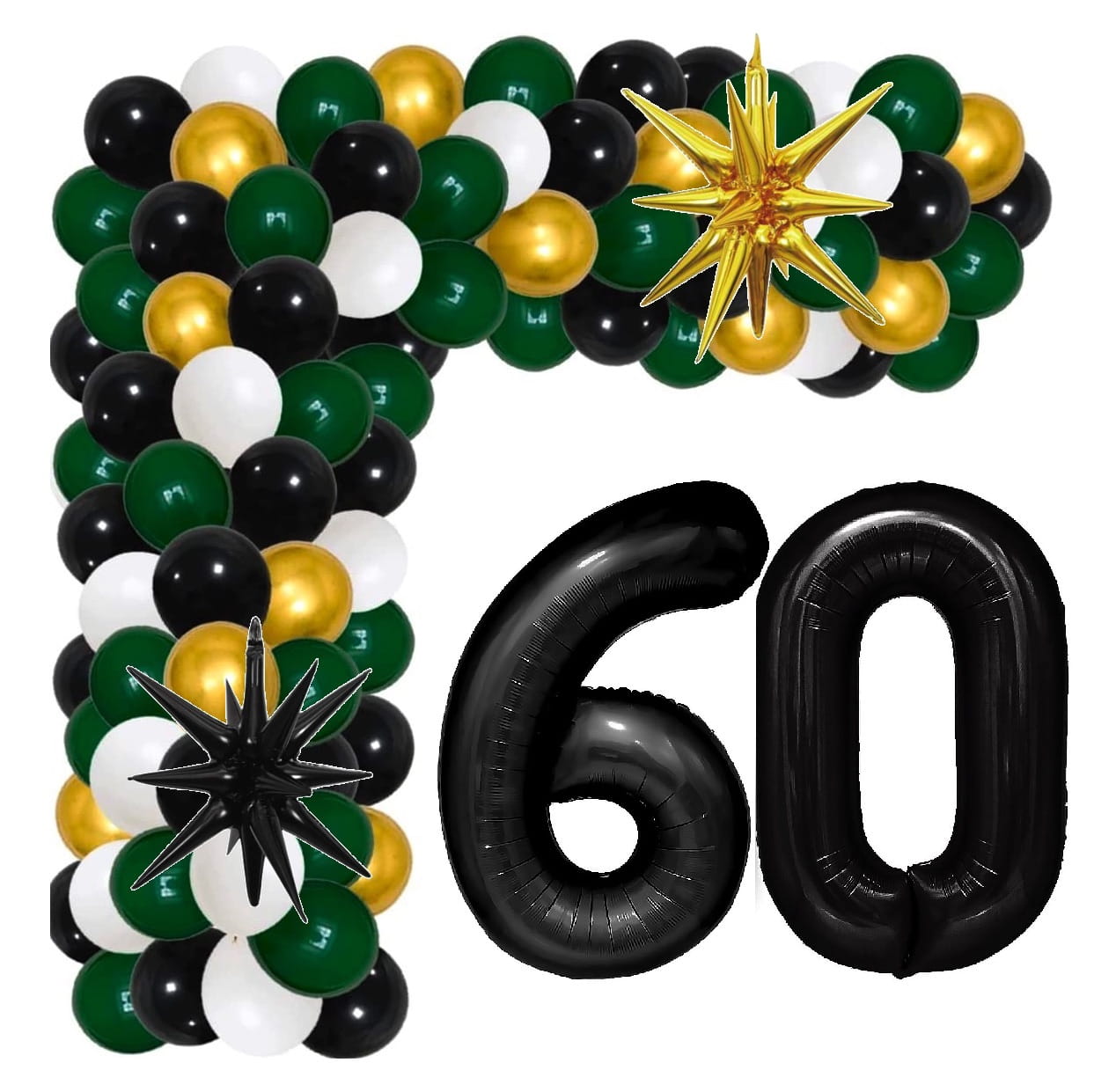 Girlanda balonowa butelkowa zieleń z Cyframi na 60 Urodziny balony z taśmą