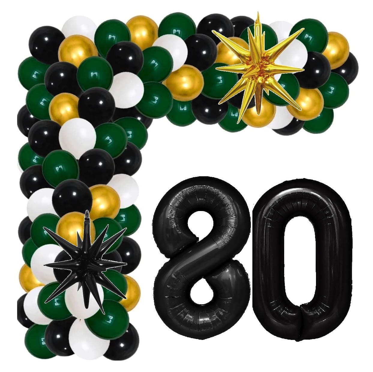 Girlanda balonowa butelkowa zieleń z Cyframi na 80 Urodziny balony z taśmą