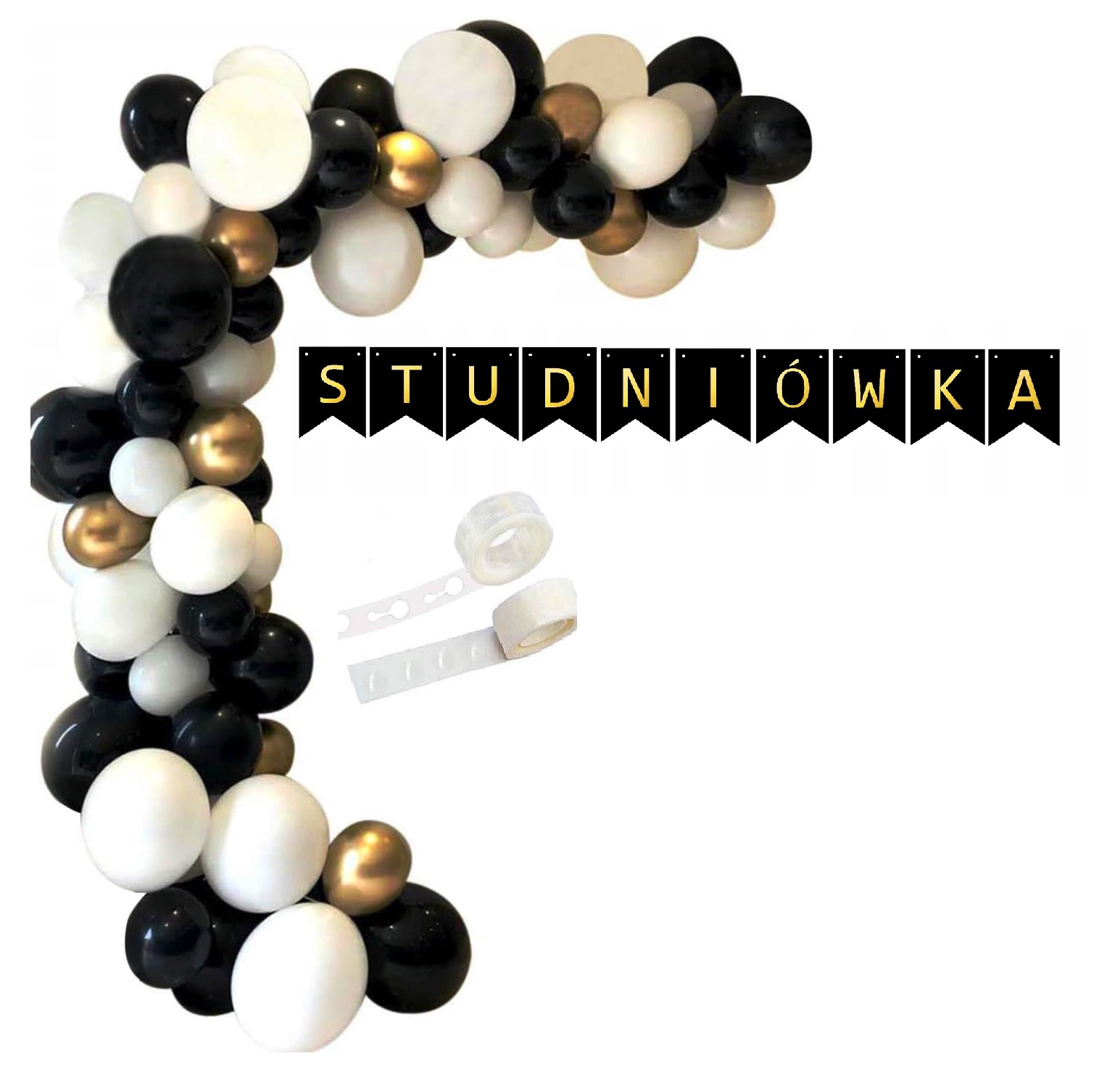 Girlanda balonowa czarno złota biała Zestaw na Studniówkę napis Studniówka