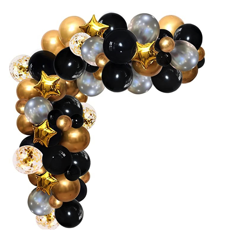 Girlanda balonowa czarno złota elegancka z gwiazdami STUDNIOWKA 2024 taśma