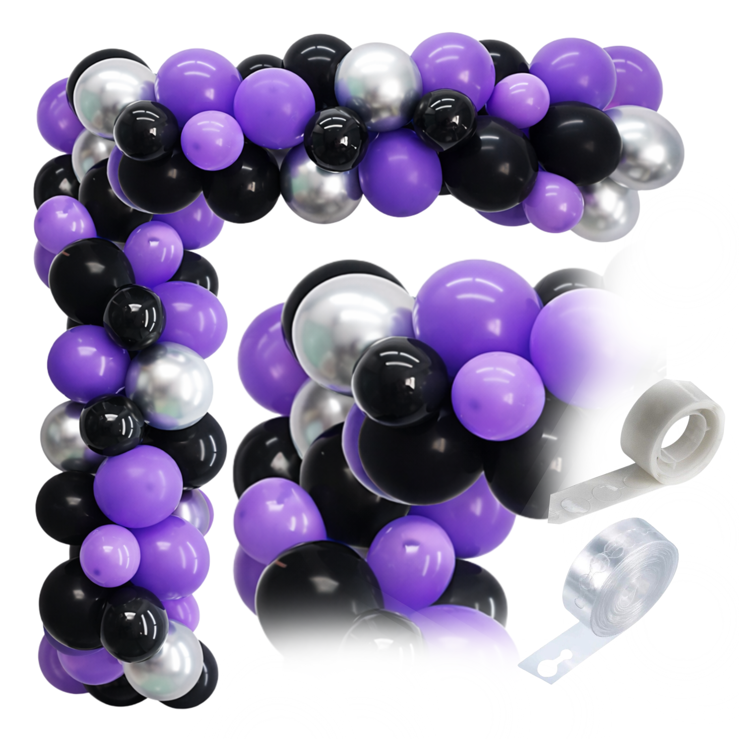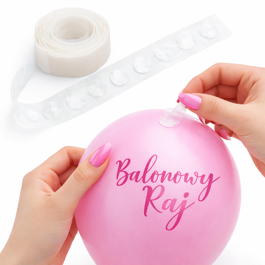 ➡️ Czy zestaw zawiera pompkę? Nie — zestaw zawiera balony, taśmę i kropki klejowe.