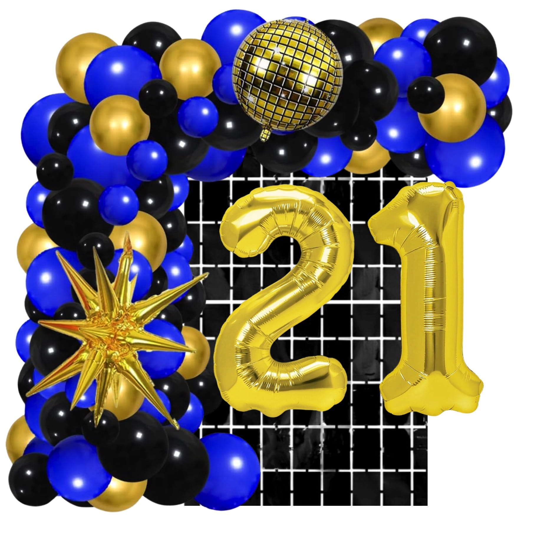 Girlanda balonowa granatowo czarna Kurtyna cyfry złote 21 urodziny Zestaw