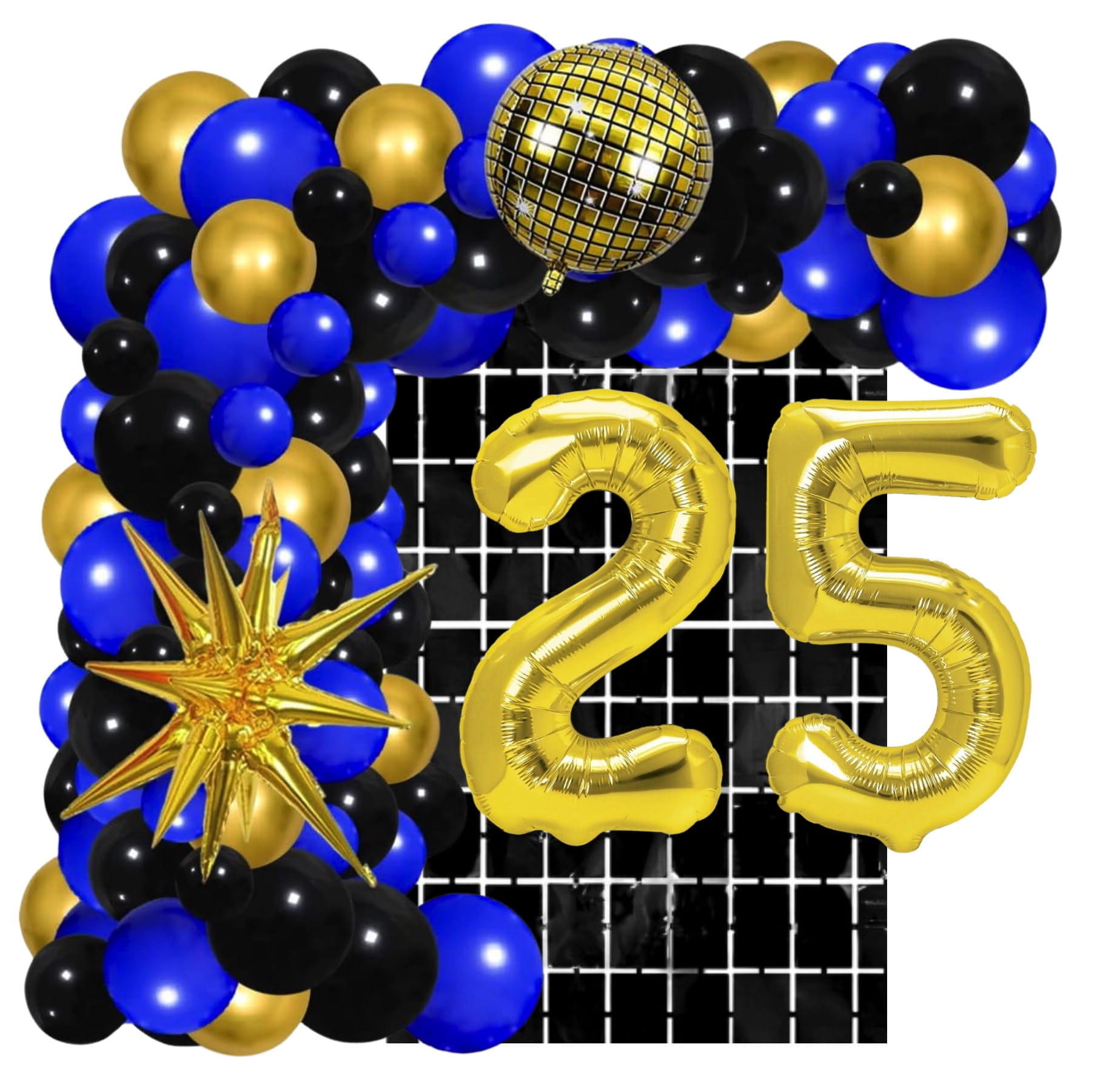 Girlanda balonowa granatowo czarna Kurtyna cyfry złote 25 urodziny Zestaw