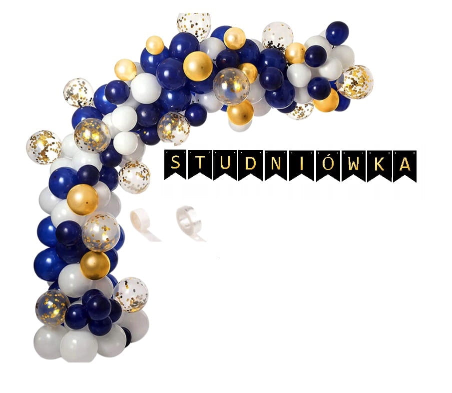 Girlanda balonowa granatowo złota na STUDNIÓWKĘ napis Studniówka Zestaw
