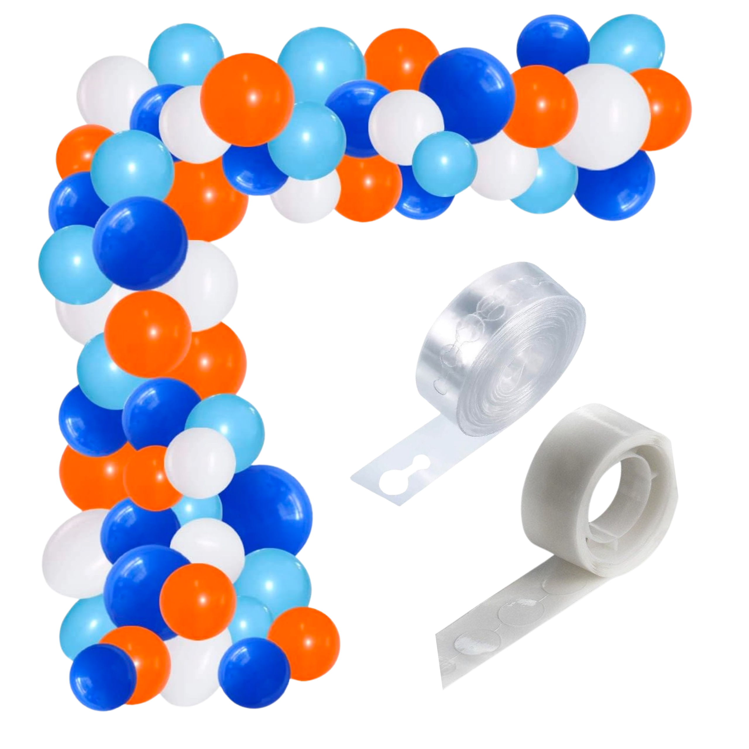 BALONY pomarańczowo niebieska Bluey Bingo zestaw taśma do girland kropki