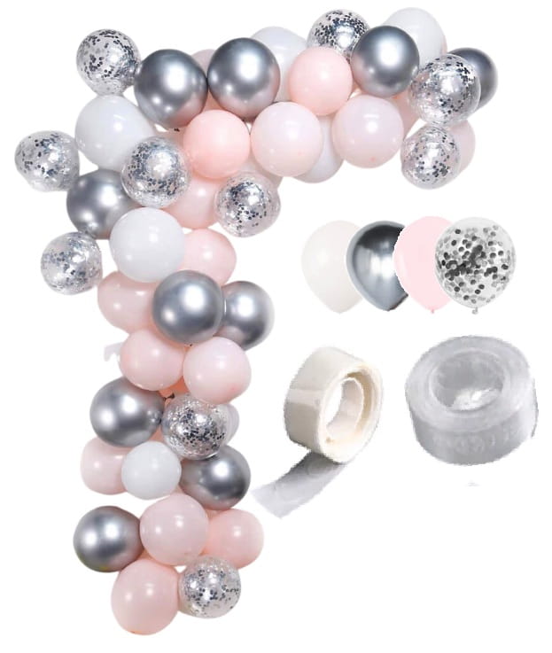 Girlanda balonowa srebrno różowa na Chrzest Komunię