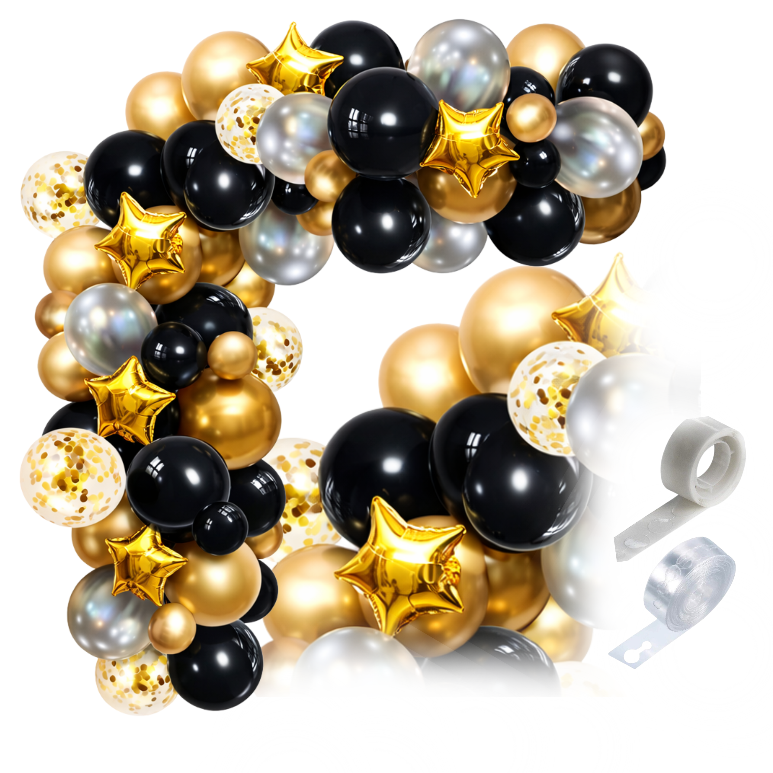 ➡️ Czy zestaw zawiera pompkę? Nie — zestaw zawiera balony, taśmę i kropki klejowe.