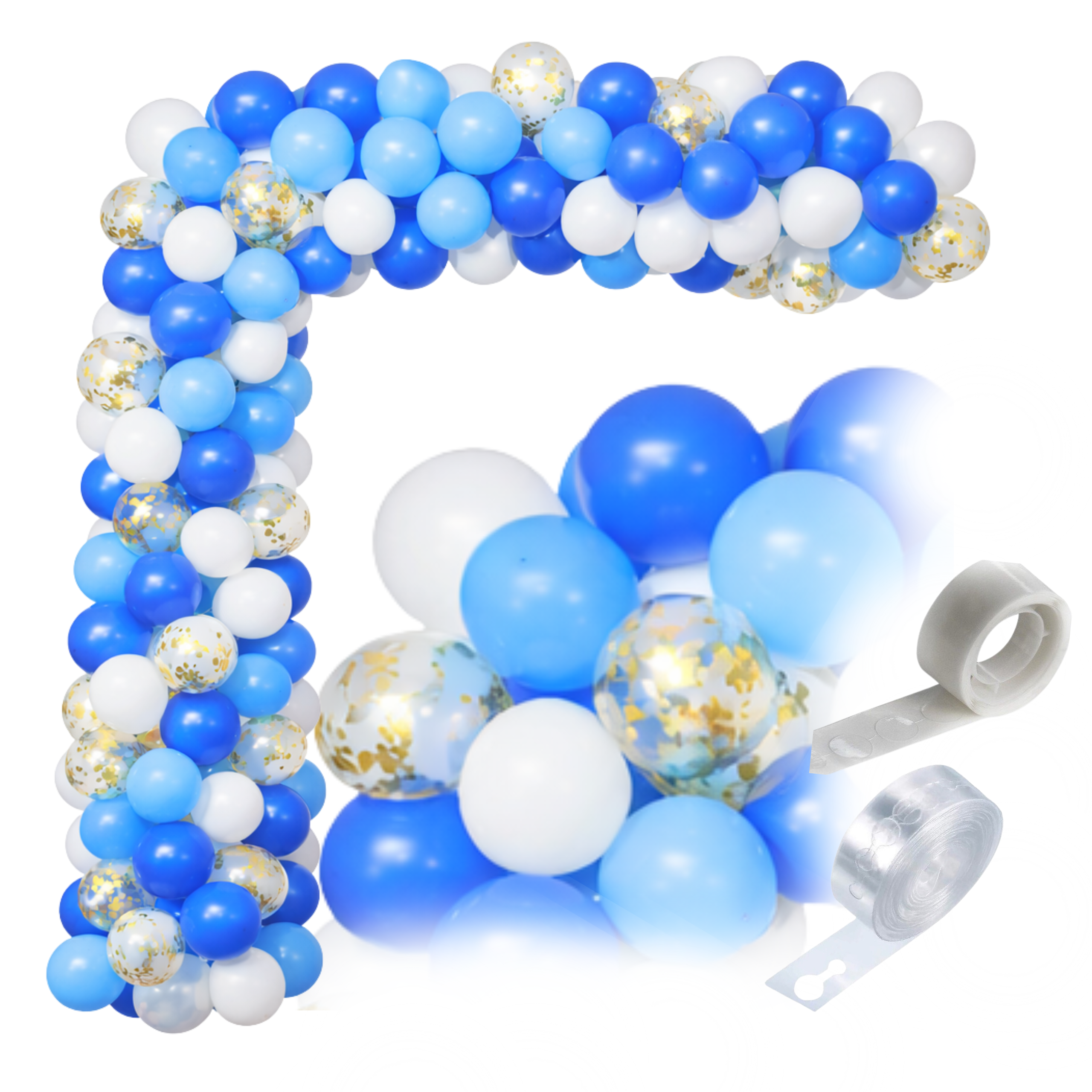 ➡️ Czy zestaw zawiera pompkę? Nie — zestaw zawiera balony, taśmę i kropki klejowe.