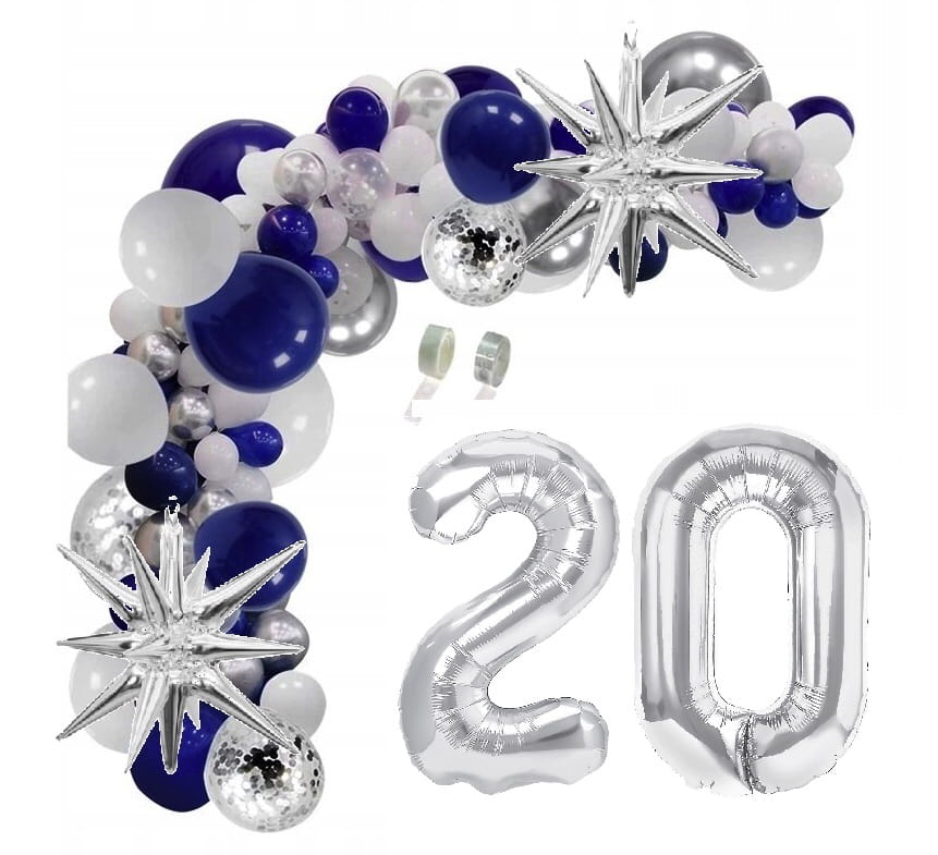 Girlanda balonowa zestaw z taśmą granatowo srebrna na 20 urodziny INSTRUKCJA
