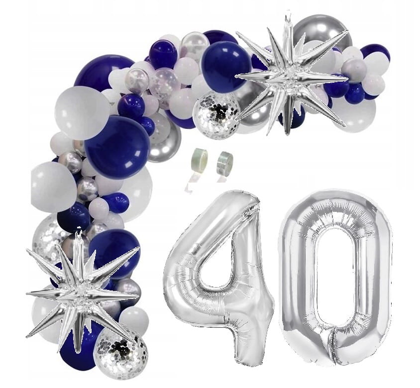 Girlanda balonowa zestaw z taśmą granatowo srebrna na 40 urodziny INSTRUKCJA
