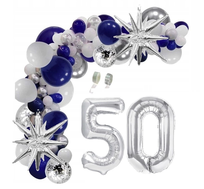 Girlanda balonowa zestaw z taśmą granatowo srebrna na 50 urodziny INSTRUKCJA