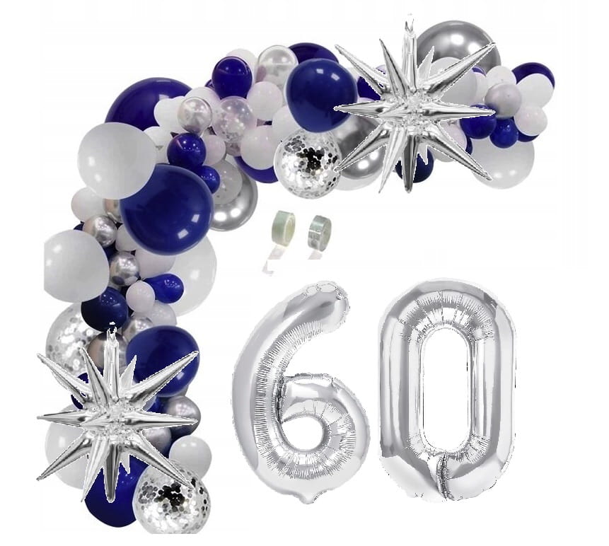 Girlanda balonowa zestaw z taśmą granatowo srebrna na 60 urodziny INSTRUKCJA