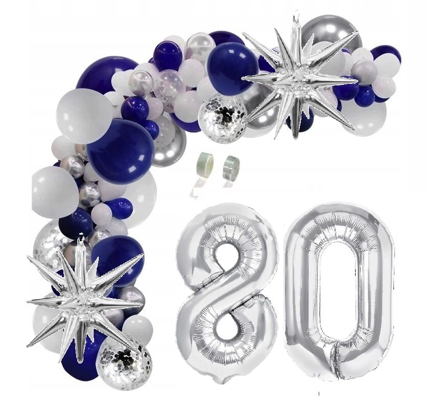 Girlanda balonowa zestaw z taśmą granatowo srebrna na 80 urodziny INSTRUKCJA