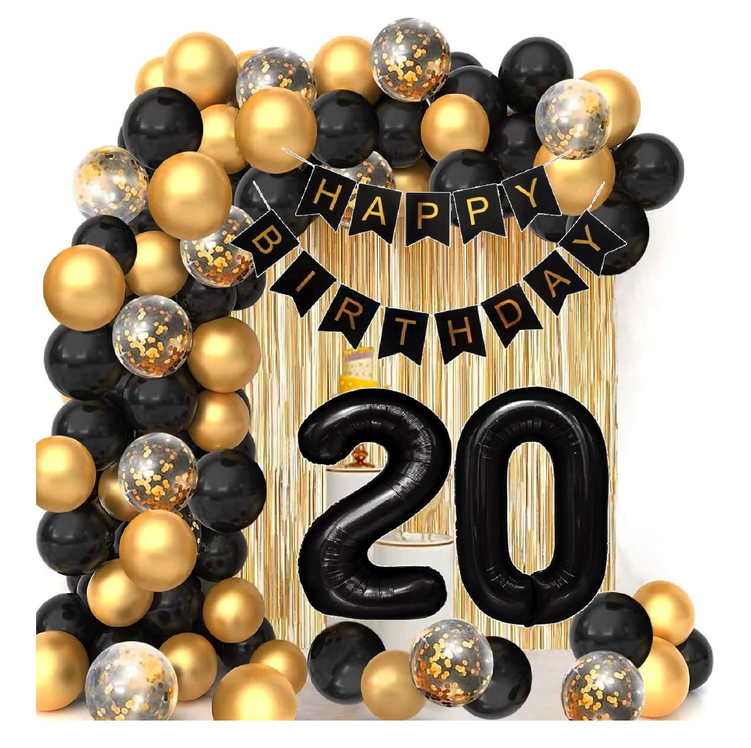 Girlanda balonowa złoto czarna ścianka na 20 Urodziny