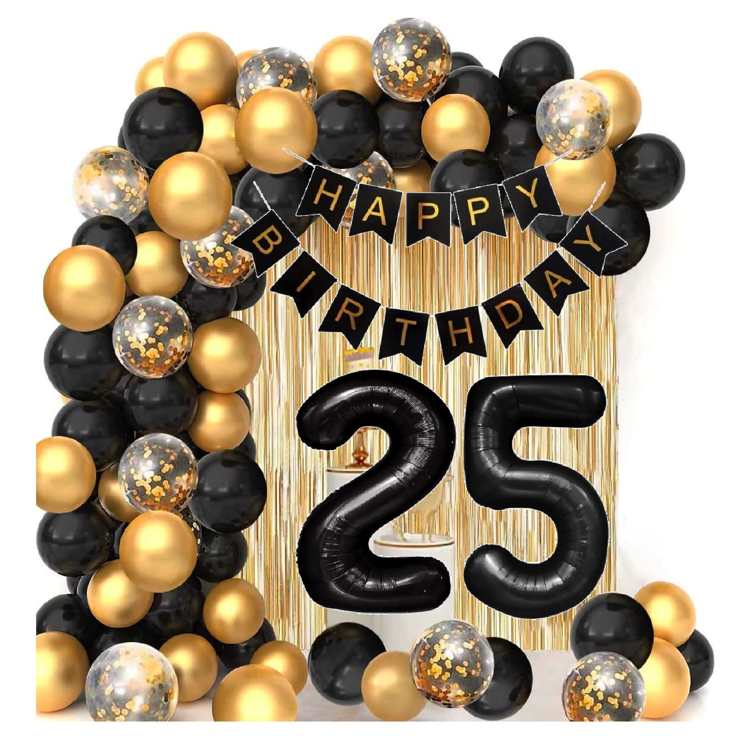 Girlanda balonowa złoto czarna ścianka na 25 Urodziny
