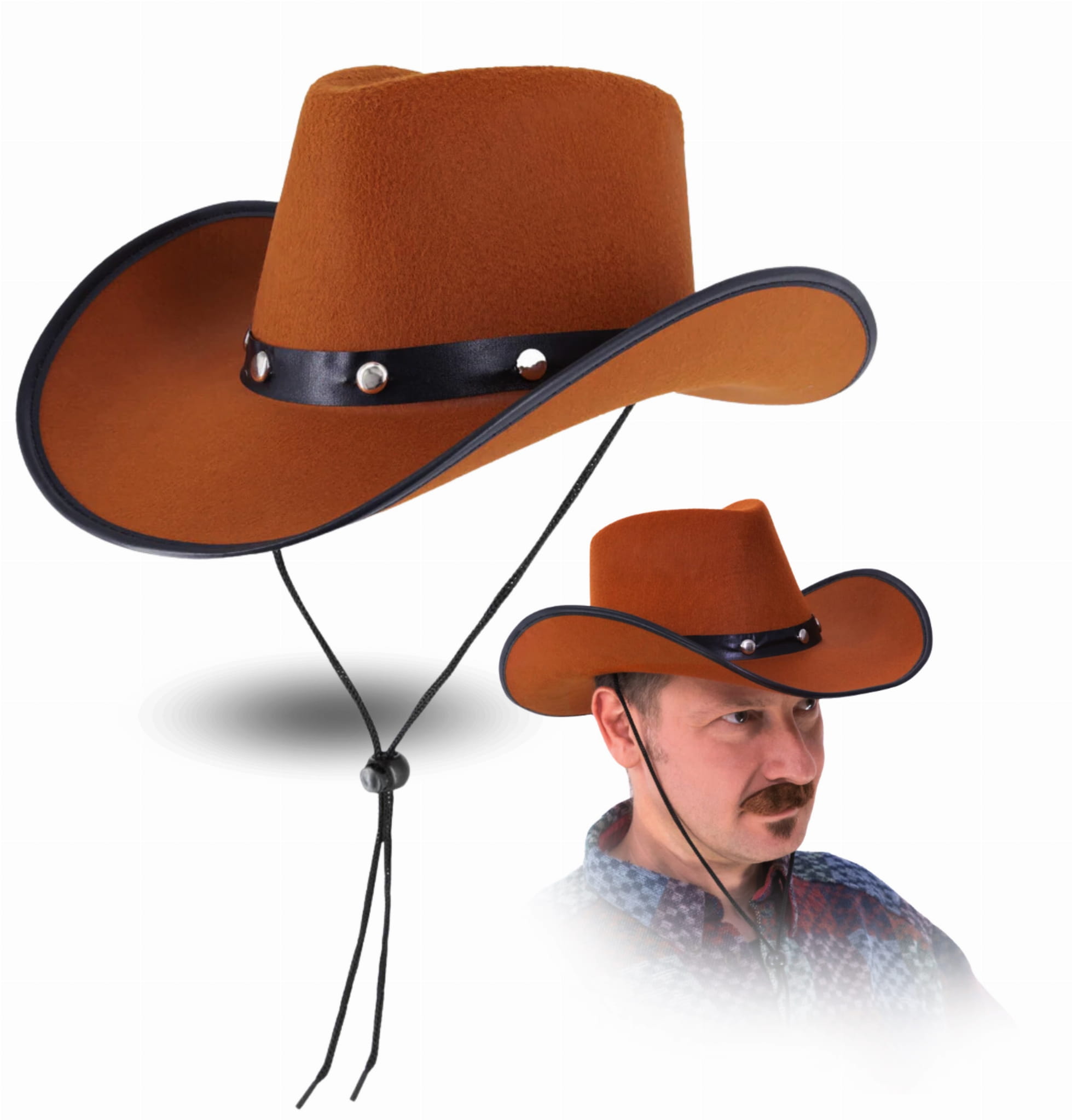 ⭐️TRWAŁY I STYLOWY – Wykonany z wytrzymałych materiałów, kapelusz w kolorze brązowym zachowuje swój kształt i styl przez długi czas, a przy tym nadaje charakterystycznego wyglądu kostiumowi kowboja lub szeryfa..