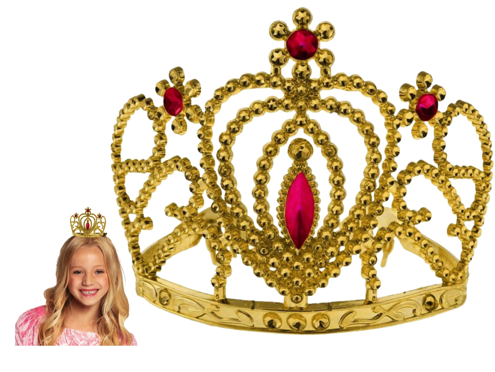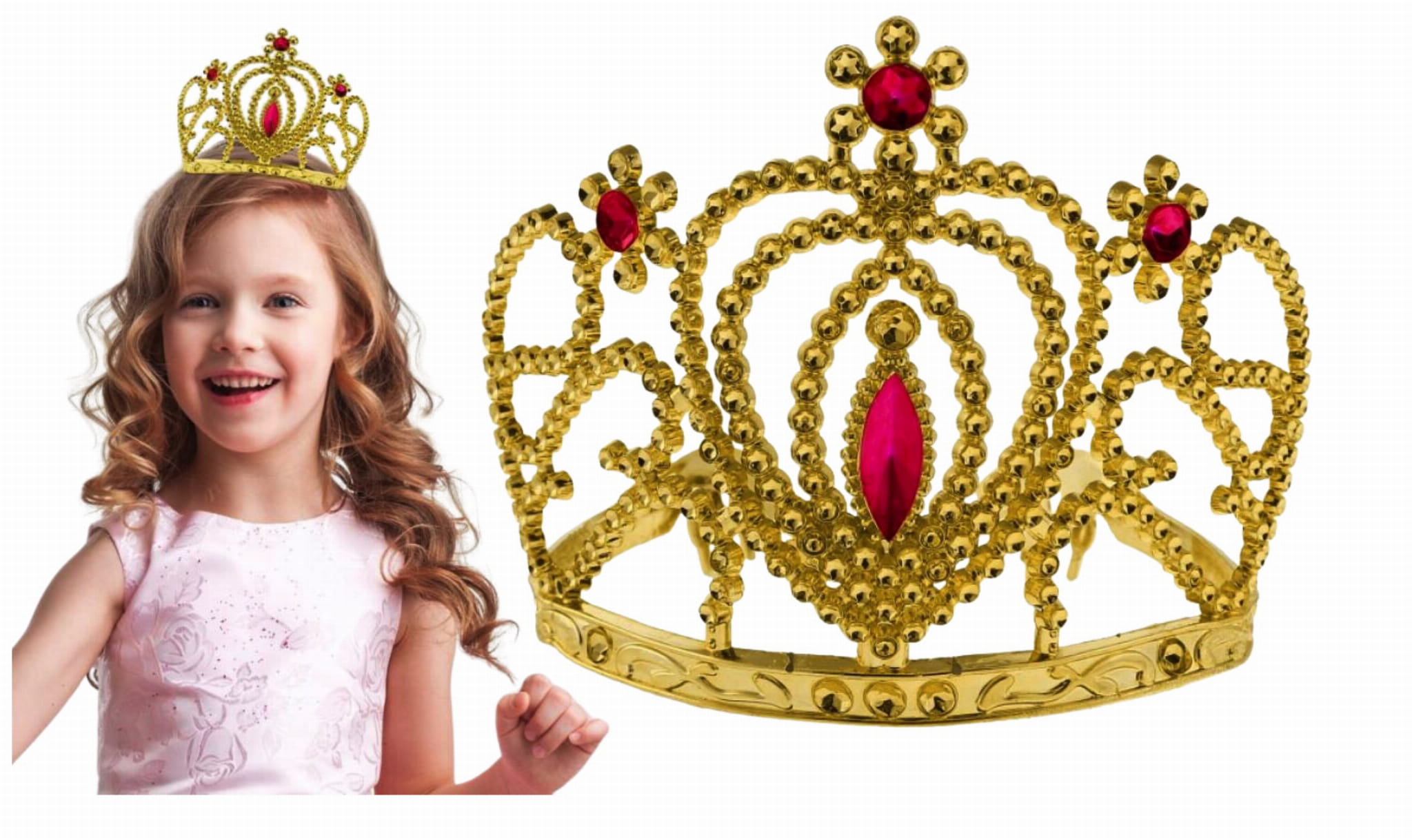 Korona złota plastikowa z diamentami Rubinami Urodziny Dziecięca